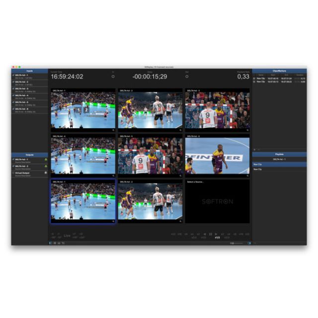 Softron M|Replay The first instant replay software on the Mac For video production or as an adjudication system for referees While recording, immediately playback an action that just happened Select the camera for output via SDI Variable playback speed Playlist editor to assemble the highlights of your recording Import media in your playlist to playout just about any media file Supports various video devices from AJA or Blackmagic-Design Supports the M | 80 , M | 62 or M | 44 M | Replay is invaluable as a replay server for video production or as an adjudication system for referees. While recording, use on-screen controls, keyboard shortcuts, or hardware controllers to immediately playback an action that just happened. Select the camera you want to output and adjust the playback speed. M | Replay provides a playlist editor to assemble the highlights of your recording or any other imported footage for immediate playout. M | Replay is a software solution that runs on your Mac and with standard video devices from AJA, Blackmagic-Design or our own M | Family and it is the most flexible and affordable solution on the market. Main features Flexible input and output configurations Enable the number of inputs and/or outputs you need and start working right away. The licenses are per channel, that you can use for input or output. As you can use the video device of your choice, you can adapt to every situation depending on the need of each production. Get the number of licenses that you need and connect the device that suits you best to your Mac. You can do instant replay with as little as one input and one output on a MacBook Pro or use high-density video devices for multiple inputs and outputs on a Mac Pro. Check out the recommended specifications. Intuitive user interface Simply drag and drop the inputs and outputs to the viewer you want to assign it to, or select it from the drop-down menu. The user interface accomodates for many inputs and outputs that you can arrange the way you want. And that's it, you are ready to go. Use the on-screen controls, keyboard shortcuts or a jog shuttle to instantly go backwards on all the viewers simultaneously. Locate the important moment you want to replay, select the angle you want to show and play it back at the appropriate speed. You can even change the input while it is playing. All that is made to be quick and easy-to-use. Everything is available at the touch of a finger and there is almost no learning curve. Create Markers, Clips and Playlists Create markers to instantly "jump" to an important moment and replay it using the angle you want. Create clips to build playlists so you can chain different moments, from different angles and at the playback speed you want. This can be very useful for creating a "highlights" playlist for example. Prepare that playlist while the show goes on so it is ready to play at the end of the show. You can even import video clips from the Finder to play in your playlist. Flexible hardware configuration M | Replay is a software that runs on any Mac with video devices from AJA, Blackmagic-Design, or our M | 80 , M | 62 , M | 44 devices. The choice is yours only, depending on the number of inputs and outputs you need. We wanted to offer you the best solution possible that can run on your Mac, and maybe with some video devices that you already own. So when you don't use the Mac as an instant replay server, you can use it to edit with your favorite editing solution, or why not record with MovieRecorder, playout with OnTheAir Video or do graphics with OnTheAir CG.
