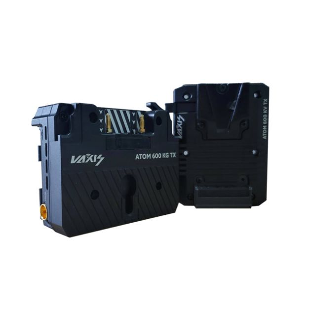 Vaxis Atom 600KG Kit for RED KOMODO (Gold Mount) Key Features For RED KOMODO Camera Includes Transmitter and Receiver Transmits Wireless Video up to 600' Supports up to 1080p Multiple Device App Monitoring Adjustable Cooling Fan Low OLED Display on Transmitter & Receiver Certified and authorized by RED DIGITAL CINEMA, the ATOM 600 SDI Wireless Video System for RED KOMODO (Gold Mount) from Vaxis enables visually lossless video transmission with less than 80 ms latency. The powerful line-of-sight signal can transmit to 600 feet while multicasting to up to four mobile devices via Wi-Fi for monitoring, using the dedicated Vaxis app. Both transmitter and receiver feature a bright OLED display and a cooling fan that can be turned on and off to prevent undesirable noise during production. A USB Type-C connector provides connectivity for firmware updates and may also be used as a 5V/2A power output. Performance and Flexibility Supports 1080p wireless video up to 600' Multicast support for transmitting video via Wi-Fi to up to four devices The unit supports 13 optimized channels with automatic channel scanning Pass-code protection Scan QR code to monitor Built-in SDI/HDMI signal converter Audio/video sync at 100% Power and Cooling Transmitter powers using a single, separately available Gold mount battery that passes power through to the dual battery plate; the receiver powers using a USB Type-C power source or using its L-series battery plate Adjustable cooling fan Gold mount battery plate can be mounted in horizontal and vertical modes What s In The Box 1x ATOM 600 Transmitter 1x ATOM 500 Receiver 1x SDI cable (39 ) 1x SDI cable (12 ) 2x Radar Antenna