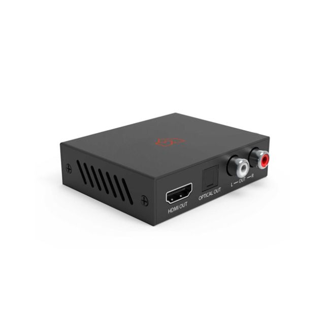 VigilLink HDMI 2.0 Audio Downmixer (18Gbps) The HDMI 18Gbps Audio Extractor could extract audio signals from any HDMI-compliant source to digital optical or analog stereo L/R audio outputs. This audio extractor also supports bitstream audio down-mix to analog stereo output and keeps optical and HDMI out audio pass-through for maximum flexibility. Further, both input and output HDMI support video resolution up to 4K2K@50/60Hz (YUV444). It supports 10bits HDR (High Dynamic Range) pass-through and HDMI high resolution digital audio formats bypass, LPCM 2CH, Dolby TrueHD, Dolby Digital Plus, Dolby Atmos, and DTS-HD Master Audio, with audio sampling rate up to 192 kHz. HDCP 2.2 and CEC bypass are supported. It is manufactured under license from Dolby Laboratories. Dolby and the double-D symbol are trademarks of Dolby Laboratories. It is manufactured under a license from DTS Licensing Limited. DTS, the Symbol, DTS and the Symbol together, and Digital Surround are registered trademarks or trademarks of DTS, Inc. in the United States and/or other countries. Features HDMI 2.0b (18Gbps), HDCP 2.2, and DVI compliant Video resolutions up to 4K2K@50/60Hz (YUV444) Extracts HDMI audio to multi-channel optical (SPDIF) or L/R analog audio HDMI Pass-through audio input to HDMI and optical audio output Supports bitstream audio down-mix to L/R analog output Optical audio supports LPCM 2CH, Dolby Digital 2/5.1CH, DTS 2/5.1CH Supports HDMI High Bit Rate (HBR) audio pass-through Audio sample rates up to 96kHz 10bits HDR (High Dynamic Range) pass-through Supports CEC pass-through Package Contents 1 HDMI 18Gbps Audio Extractor 1 5V/1A Power Adapter 1 User Manual