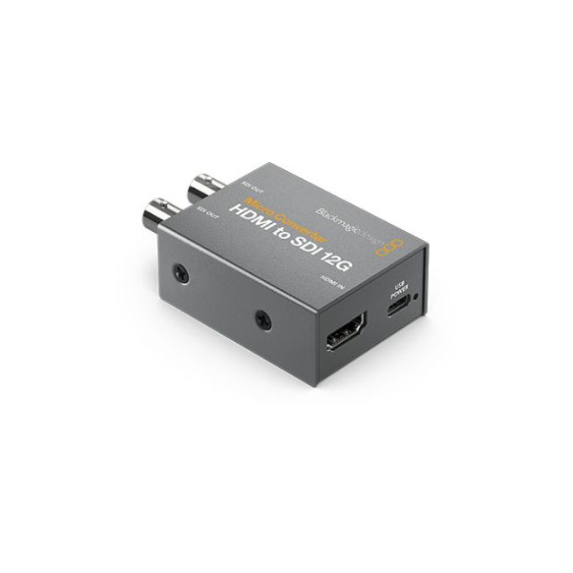 Blackmagic Design Micro Converter - HDMI to SDI 12G The new Blackmagic Micro Converters are incredibly tiny broadcast video converters that let you connect between consumer HDMI and professional SDI equipment. The rugged and miniaturized design makes them small enough to be used anywhere! You get professional 3G-SDI or 12G-SDI connections, depending on the models, so you can work with SD, HD and Ultra HD formats up to 2160p60. Micro Converters use USB for power, so they can be powered directly from televisions or laptop computers. You can even purchase them without power supplies! Only Blackmagic Micro Converters feature custom electronics that conform to global broadcast specifications, and can be updated to new standards in the future. Micro Converter HDMI to SDI 12G This model is perfect for connecting HDMI cameras and computers to professional SDI equipment! You get two 12G-SDI outputs for connecting to SD, HD or Ultra HD equipment. When working in HD it supports 3G-SDI level A and B. This model also supports film standards including 4Kp24, 4Kp47.95 and 4Kp48. Use Anywhere! Pocket sized broadcast quality converters! Blackmagic Micro Converters are so small you can use them anywhere! That means it s always easy to keep a few available for any urgent conversion task! Because they are extremely high quality, you can trust them for all kinds of broadcast, live production and on set use. Use them to turn any computer display, television or video projector into a high quality color calibrated broadcast monitor. They're also perfect for converting the HDMI outputs of computers and consumer video cameras to high end SDI equipment. Imagine using a slide show running on a computer for high end broadcast quality titles in live production! You could even use them for extending HDMI long distances using SDI. Miniaturized Design. Precision engineered broadcast grade converters! Unlike other small SDI converters, Blackmagic Micro Converters feature the highest quality broadcast technology, miniaturized into an incredibly strong metal enclosure. Each converter has the highest quality broadcast industry standard SDI and HDMI connectors. Blackmagic Micro Converters include a USB connection for power, as well as for changing settings via the converter utility on Mac and Windows. Because the USB powers the converter, you can even power it from televisions or laptop computers. There are even LEDs for status. You can also buy Blackmagic Micro Converters with an AC power supply including 4 adapters for international use. Broadcast Quality. Big converter quality, miniaturized! Unlike cheap converters, Blackmagic Micro Converters include the highest quality signal processing and deep bit depth video pipeline. Micro Converters have been engineered with precision electronics so you get very low SDI jitter, allowing you to extend SDI cables over long distances. That s vital for live production where equipment such as cameras can be a long distance from switchers. Blackmagic Micro Converters work with both 8 and 10-bit video formats, in RGB or YUV, and in all SD, HD and Ultra HD formats, depending on the model, up to 2160p60. They even support 1080p24, 1080p47.95, 1080p48, 4Kp24, 4Kp47.95 and 4Kp48 film rates! Plus you get fully embedded audio and timecode support. Update and Change Settings! You can also change settings and update the converter software with the free converter utility that can be downloaded from the Blackmagic Design web site. This software connects to the USB connection on the Micro Converters and runs on both Mac and Windows computers. You can use the utility to change the converter name, which can be useful for identifying which converter is used for which task! When using the bidirectional converter, you can even set the camera number, so the converter knows when it s being controlled from a live production switcher. You can also select between level A and level B when working with 3G-SDI video standards. Monitoring with 3D LUTs. Get color accurate monitoring on any type of display! For color accurate monitoring, some models include a 3D LUT! You can apply custom looks, color and gamma changes in real time for on set monitoring. Plus LUTs can also be applied to the SDI loop output, allowing you to use the converter as a 3D LUT processor! 3D LUTs are great for allowing a low cost computer monitor or TV to be used as a color calibrated broadcast or grading monitor. 3D LUTs are included on the SDI to HDMI 3G, SDI to HDMI 12G and BiDirectional SDI/HDMI 12G models. You can even use DaVinci Resolve to create custom 3D LUTs! Because DaVinci Resolve can be downloaded free, it costs nothing to start creating your own library of 3D LUTs! Imagine reproducing old film stocks! Latest HDR Support Micro Converter 12G models have everything for the latest HDR workflows. Simply connect a HDR monitor, projector or TV and you are ready for HDR monitoring! Static metadata PQ and Hybrid Log Gamma (HLG) formats in the VPID are handled according to the ST2108-1, ST2084 and the ST425 standards. Micro Converter 12G models handle ST425 which defines 2 new bits in the VPID to indicate transfer characteristic of SDR, HLG or PQ. Plus the ST2108-1 standard defines how to transport HDR static or dynamic metadata over SDI. There is also support for ST2082-10 for 12G SDI as well as ST425 for 3G-SDI sources. Both Rec.2020 and Rec.709 colorspaces are supported. Includes HDMI Timecode Support The new Micro Converter models use a new Blackmagic Design custom hardware design so they're more advanced to better support the technical features critical to high end broadcast workflows. These features include support for HDMI and SDI timecode conversion. You even get full support for timecode in both standard definition and high definition video formats. This means if you have any HDMI device that supports timecode, you can convert it to SDI and get that timecode into larger broadcast systems. Blackmagic Micro Converters might be low