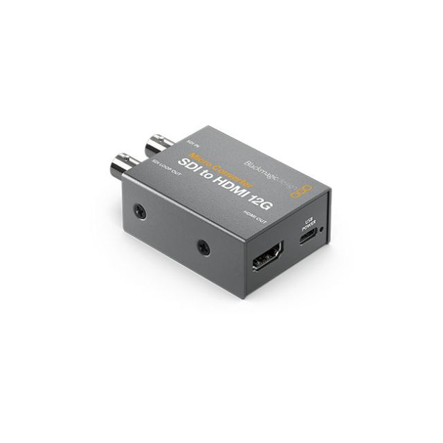 Blackmagic Design Micro Converter - SDI to HDMI 12G The new Blackmagic Micro Converters are incredibly tiny broadcast video converters that let you connect between consumer HDMI and professional SDI equipment. The rugged and miniaturized design makes them small enough to be used anywhere! You get professional 3G-SDI or 12G-SDI connections, depending on the models, so you can work with SD, HD and Ultra HD formats up to 2160p60. Micro Converters use USB for power, so they can be powered directly from televisions or laptop computers. You can even purchase them without power supplies! Only Blackmagic Micro Converters feature custom electronics that conform to global broadcast specifications, and can be updated to new standards in the future. Micro Converter SDI to HDMI 12G This model is perfect for monitoring in all SD, HD, 4K and Ultra HD standards up to 2160p60. It includes a 17 point 3D LUT for color calibrating monitors. You can also output the 3D LUT on the 12G-SDI loop output! Plus it supports DCI film rates including 4Kp24, 4Kp47.95 and 4Kp48. Use Anywhere! Pocket sized broadcast quality converters! Blackmagic Micro Converters are so small you can use them anywhere! That means it s always easy to keep a few available for any urgent conversion task! Because they are extremely high quality, you can trust them for all kinds of broadcast, live production and on set use. Use them to turn any computer display, television or video projector into a high quality color calibrated broadcast monitor. They're also perfect for converting the HDMI outputs of computers and consumer video cameras to high end SDI equipment. Imagine using a slide show running on a computer for high end broadcast quality titles in live production! You could even use them for extending HDMI long distances using SDI. Miniaturized Design. Precision engineered broadcast grade converters! Unlike other small SDI converters, Blackmagic Micro Converters feature the highest quality broadcast technology, miniaturized into an incredibly strong metal enclosure. Each converter has the highest quality broadcast industry standard SDI and HDMI connectors. Blackmagic Micro Converters include a USB connection for power, as well as for changing settings via the converter utility on Mac and Windows. Because the USB powers the converter, you can even power it from televisions or laptop computers. There are even LEDs for status. You can also buy Blackmagic Micro Converters with an AC power supply including 4 adapters for international use. Broadcast Quality. Big converter quality, miniaturized! Unlike cheap converters, Blackmagic Micro Converters include the highest quality signal processing and deep bit depth video pipeline. Micro Converters have been engineered with precision electronics so you get very low SDI jitter, allowing you to extend SDI cables over long distances. That s vital for live production where equipment such as cameras can be a long distance from switchers. Blackmagic Micro Converters work with both 8 and 10-bit video formats, in RGB or YUV, and in all SD, HD and Ultra HD formats, depending on the model, up to 2160p60. They even support 1080p24, 1080p47.95, 1080p48, 4Kp24, 4Kp47.95 and 4Kp48 film rates! Plus you get fully embedded audio and timecode support. Update and Change Settings! You can also change settings and update the converter software with the free converter utility that can be downloaded from the Blackmagic Design web site. This software connects to the USB connection on the Micro Converters and runs on both Mac and Windows computers. You can use the utility to change the converter name, which can be useful for identifying which converter is used for which task! When using the bidirectional converter, you can even set the camera number, so the converter knows when it s being controlled from a live production switcher. You can also select between level A and level B when working with 3G-SDI video standards. Monitoring with 3D LUTs. Get color accurate monitoring on any type of display! For color accurate monitoring, some models include a 3D LUT! You can apply custom looks, color and gamma changes in real time for on set monitoring. Plus LUTs can also be applied to the SDI loop output, allowing you to use the converter as a 3D LUT processor! 3D LUTs are great for allowing a low cost computer monitor or TV to be used as a color calibrated broadcast or grading monitor. 3D LUTs are included on the SDI to HDMI 3G, SDI to HDMI 12G and BiDirectional SDI/HDMI 12G models. You can even use DaVinci Resolve to create custom 3D LUTs! Because DaVinci Resolve can be downloaded free, it costs nothing to start creating your own library of 3D LUTs! Imagine reproducing old film stocks! Latest HDR Support Micro Converter 12G models have everything for the latest HDR workflows. Simply connect a HDR monitor, projector or TV and you are ready for HDR monitoring! Static metadata PQ and Hybrid Log Gamma (HLG) formats in the VPID are handled according to the ST2108-1, ST2084 and the ST425 standards. Micro Converter 12G models handle ST425 which defines 2 new bits in the VPID to indicate transfer characteristic of SDR, HLG or PQ. Plus the ST2108-1 standard defines how to transport HDR static or dynamic metadata over SDI. There is also support for ST2082-10 for 12G SDI as well as ST425 for 3G-SDI sources. Both Rec.2020 and Rec.709 colorspaces are supported. Includes HDMI Timecode Support The new Micro Converter models use a new Blackmagic Design custom hardware design so they're more advanced to better support the technical features critical to high end broadcast workflows. These features include support for HDMI and SDI timecode conversion. You even get full support for timecode in both standard definition and high definition video formats. This means if you have any HDMI device that supports timecode, you can convert it to SDI and get that timecode into larger broadcast systems. Blackmagic Micro Converters might be low cost, however the