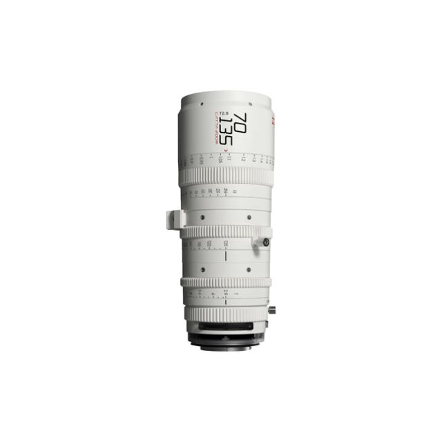 DZOFILM Catta 70-135mm T2.9 E-Mount Cine Zoom Lens (White) Add a cinema zoom lens to your documentary, broadcast, or online production kit with this white Catta 70-135mm T2.9 E-Mount Cine Zoom Lens from DZOFilm . The cine zoom lens is designed to maintain focus as you smoothly zoom in or out. The Catta line reproduces accurate color and features a smooth focus/defocus transition. It features a wide T2.9 to T22 aperture, a 16-blade iris for a smooth bokeh, and a long 29.9" close focus range. True to its cine design, it has a focus rotation of 270 , a 100 zoom rotation range, and an 80 iris rotation range. The lens features a Sony E mount, and it can be easily interchanged with optional RF, L, X, and Z mounts. Multiple accessories are included with the lens, including front and rear lens caps, a shim set, a support base, a support rod, and a filter bracket. Key Features Maintains focus throughout 70 to 135mm zoom range Minimal breathing 16-blade iris with a soft bokeh T2.9 to T22 aperture; 1.9x magnification ratio 270 focus rotation; 100 zoom rotation; 80 iris rotation 29.9" minimum focus distance 80mm front diameter 0.8 MOD gears