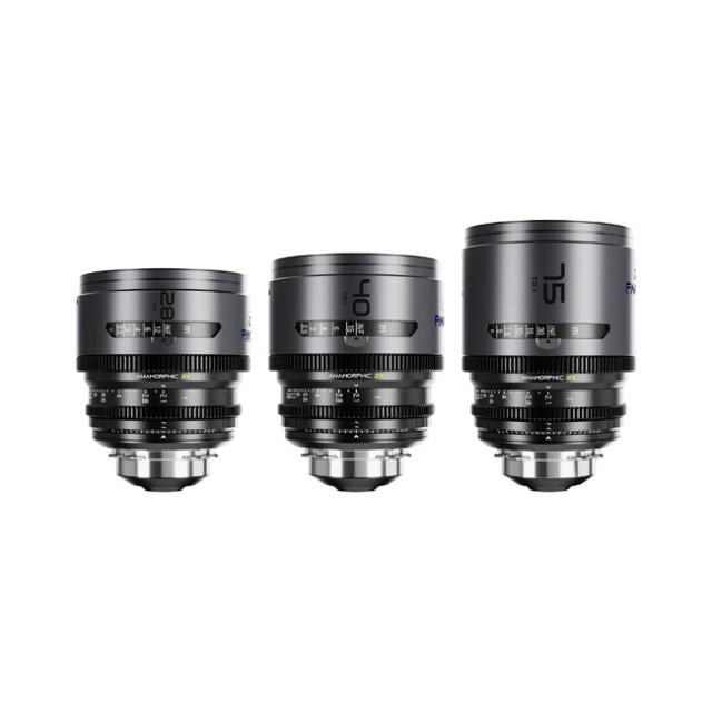 DZOFILM Pavo 2x Anamorphic Prime A Set (28/40/75mm T2.1, Blue Coating, PL & EF) Capture stunning cinematic images with a vintage anamorphic look using this PAVO 2x Anamorphic 28/40/75mm T.2.1 3-Lens Set from DZOFilm. Designed to cover the Super35 sensor of cine-style cameras, this set of blue-coated lenses includes three focal lengths (28, 40, and 75mm). A hard carry case is included. The PAVO series comprises 28mm to 180mm focal lengths with a 2X compression ratio. This expansion of the cinematic scope allows for the inclusion of additional details, resulting in a more dramatic depth of field. It achieves a genuine anamorphic look that immerses viewers in a visually spectacular world, while maintaining a harmonious and unified visual style across the entire series, making it the ideal choice for professional film production. While providing comprehensive coverage of practical focal lengths, the Pavo series remains lightweight and compact, with weights ranging from 1.2 to 2 kg. These lenses are compatible with gimbals, steadicams and drones, allowing for a wide range of shooting settings, from handheld to aerial, catering to both indie filmmakers and large-scale productions. PAVO provides exceptional resolution with precise control, ensuring negligible breathing effects even at longer focal lengths. The innovative design minimizes chromatic aberration, resulting in sharp, crisp images with accurate color rendering. PAVO provides a smooth transition between in-focus and out-of-focus images with a characteristic anamorphic look. PAVO lenses feature a built-in back-focus adjustment, enabling precise adjustments while the lens is mounted, streamlining operational processes. Additionally, these lenses can adapt to full-frame cinema cameras using the Marlin 1.6X Expander, broadening compatibility across various shooting scenarios and meeting the demands of professional film production. PAVO offers two different horizontal flare colors, Blue and Neutral, to cater to a wide range of movie genres and visual styles. The dark gray exterior design takes inspiration from the futuristic aesthetics of iconic sci-fi spaceships and blends the essence of modern design into its construction. The Blue version is adorned with cobalt ink, while the Neutral version is elegantly embellished with vermilion ink.