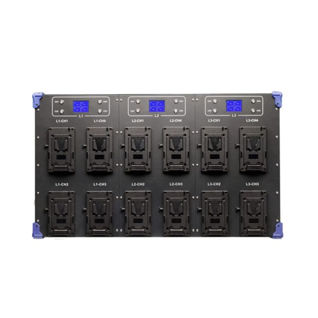 FXlion 12 CH Bi-Voltage Wall Charger (V-Mount) This Bi-Voltage Wall Charger can identify the battery voltage and adjust its output voltage and current according to it. This makes it easier to charge different voltage V-Mount batteries with only one charger! No more waiting time and lots of different chargers. You can now only use one tool for that purpose. Saves you a lot of time! You can use this charger with 26V as well as 14.8V V-Mount batteries. Instead of a display, the charger will show you an LED indication for the status and the according voltage. The four mounting plates of the Bi-Voltage Wall Charger allow you to nicely screw it into a wall in your rental or production company. Screws and mounting plates are included in the package. There are also three main switches, that you can use to power on or off the charger into three groups. These groups are built out of 4 charging channels. All batteries will be charged simultaneously! If your prefer to keep the charger mobile, thats also not a problem. Just make sure that the ventilation system is not blocked by anything and you are ready to go! For other wall chargers, take a look at the 12 CH Wall Charger and the 12-CH Smart Wall Charger. Input: 100~240VAC 47~63Hz Power Draw: 1000W DC Outputs: 12 x 16.8V/4.0A or 29.4V/2.0A Dimensions: 785(L)mm*540(W)mm*103(H)mm Weight: 13.9kg
