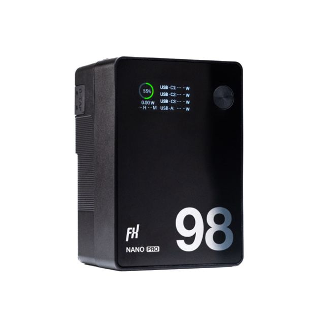 Fxlion NANO PRO Key Features: Ultra-Compact Design with Maximum Energy and Volume Efficiency High-rate lithium cells, 98Wh capacity supports up to 13A high-current discharge, delivering a maximum output power of 156W Equipped with a smart LCD screen and intelligent display showing: battery capacity, input/output voltage, input/output power, charge/discharge time, cycle count, and internal temperature. Supports communication with cameras to display battery info directly on the camera Integrated intelligent BMS offering comprehensive protection: over-voltage, over-current, over-temperature, overcharge, over-discharge, and overload protection 1*USB-C PD100W input and output port, enabling ultra-fast charging and 100W high-power discharge for demanding devices Smart thermal management for the 100W PD output ensures stable operation and safety 2*USB-C 18W outputs provide simultaneous power supply for multiple devices 1*USB-A fast charging output for universal device compatibility 2*D-Tap outputs supporting up to 13A total output for powering professional-grade equipment concurrently Multiple outputs can operate simultaneously without interference V-mount plate includes both 1/4 and 3/8 threaded holes to meet various mounting and rigging requirements for professional accessories D-Tap and USB ports feature dust caps for enhanced durability and field protection Housing combines metal and V0 flame-retardant plastic, with a metal-like finish button design for improved safety and comfort during handheld operation Compatible with both professional V-mount chargers and USB-C chargers for versatile charging options Ideal for diverse applications powers smartphones, laptops, video lights, and cinema cameras, making it suitable for both consumer and professional use. Specification: Capacity: 6.8Ah / 98Wh Voltage: 14.4V Mount: V-Mount Working Current: 13A(Max) Working Power: 156W(Max) D-Tap Output*2: 10~16.8V/13A(Max) USB-A Output: 5V/3A 9V/2A 12V/1.5A Supports fast charging protocols including QC2.0, QC3.0, FCP, and BC1.2. USB-C1 Input/Output: 5V/3A 9V/3A 12V/3A 15V/3A 20V/5A 100W(Max) USB-C2&C3 Output: 5V/3A 9V/2A 12V/1.5A 18W(Max) Operating Temperature: -20 C to +55 C Charging Temperature: 0 C to +40 C Storage Temperature: -20 C to +45 C Dimensions: 108.7(L)mm 74(W)mm 54.4(H)mm Weight: 612g Optional Chargers: Compatible with professional V-mount battery chargers and USB-C chargers that support the PD protocol for smartphones and laptops. Note: PD100W charging requires an E-mark certified USB-C cable.