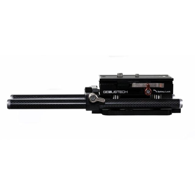 Genustech Exceptional Plate (Swiss Arca Quick Release Plate, Pair of 215mm/8.6'' Rods, 4 Riser Blocks, 15mm Rod Support Bracket) The Gen X Plate is a revolutionary new camera baseplate system catering to both large and small cameras Genus has designed this baseplate for the camera professional who needs their equipment to have the flexibility and versatility to adapt and evolve to new camera and production challenges. Gen X Plate intakes the core Genus design principles of flexibly and ease of use to the next levels. The Genus Quick Release System (QR LOCK) allows the user to easily and quickly swap between camera set ups. The QR System incorporates a safety lock for added security and confidence while shooting. The Genus quick release Plate comes with camera locating pin, as well as one Screw and one 3/8 Screw camera screws. The travel distance of the Genus quick release Plate is 200mm. The Gen X Plate s is designed is to easily adapt to different camera system and accessories. The21mm removable riser posts allow for you to set the plate at the height which is right for your camera system. Whether you require a higher setups for cameras likes DSLRs, or the lower position for larger camera systems such as RED, F3 and Canon C Series cameras. The Gen X plate has your support needs covered. (Rod Bracket Adaptor) The Gen X Plate is designed to support 15mm light weight support rods. These 250mm long rods are provided as standard. They can be attached to brackets at the front and rear of the plate. The height of each bracket can be set independently and is adjusted with a Screw. This allows for the easy configuration and adjustment of support rods for use with other accessories such as matte boxes, follow focus, cheese plates or monitors. The front bracket allows for range of approximately 55mm adjustment in height, while the rear bracket allows for approximately 15mm adjustment in height. The Gen X camera baseplate comes in to two packages to suite specific camera professionals requirements. One contains one 15mm Rod Bracket Adaptor, while the other is available with the full set of two Rod Bracket Adaptors. Gen X Plate /1 Includes: 1 x Genus X Base Plate 2 x 15mm LWS Rods (215mm Length) 1 x Genus quick release Plate (with 1 x & 1 x 3/8 Camera Screws) 4 x Height Adjustment Posts 2 x Rod Bracket Adaptor 4 x Attachment Screws Option: Free upgrade to 15mm Carbon Fiber Rods 250mm (pair) Free upgrade to 15mm Carbon Fiber Rods 350mm (pair) The Rod Bracket Adapter can also be purchased separately. In addition the Gen X Plates has been designed with the flexibility in mind and deal with issues facing many camera professionals today. Its configuration can be adapted to allow for horizontal offset of camera if required.