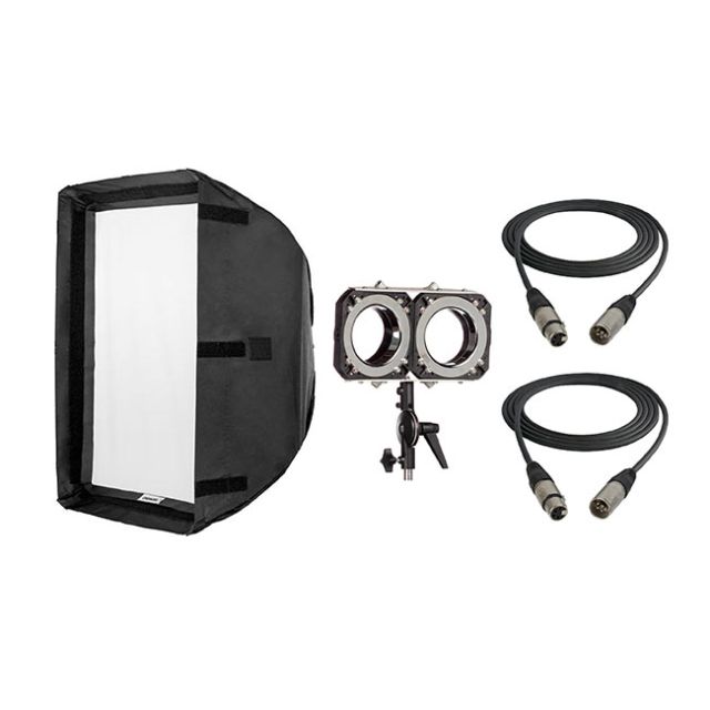 Hive Lighting Double Light Softbox Kit with Double Header Mount for Omni-Color LEDs The double light soft box kit combines Hive s double header mount with our extra small rectangular soft box. Combining two Omni-Color LEDs into this single modifier allows for higher output levels while keeping the quality of light expected from a soft box and Hive s unparalleled color control. This modifier kit is also Profoto compatible and can work with third party LEDs and strobe heads, pairing them with the 16 x 22 traditional rectangular soft box featuring optimized materials to support fixtures with low-heat output. Inside the Box: XS Soft Box Double Header Mount (Profoto Compatible) 2 x 15 XLR Header Cable Compatibility: All Omni-Color LEDs Profoto Mount Compatible Light Fixtures 15 XLR Header Cables are for 50-C, 100-C and 200-C Lights