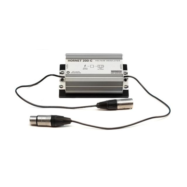 Hive Lighting Hornet 200-C Battery Cable with In-Line Voltage Regulator The 200-C Voltage Regulator allows for battery operation from the widely available single 14.4V battery with a D-tap to 4pin XLR cable. Built to mount directly to the Hive Adjustable Yoke using the same pin clip as the Hive battery plate or easily adapted to mount to a light stand or grid with a standard Mafer/Super Clamp. Compatible with any 10-20VDC 150Wh or greater battery with adapter to 4pin XLR. ONLY compatible with the 200-C. Inside the Box: Voltage Regulator Compatibility: Hornet 200-C D-Tap to XLR cable Gold Mount Battery Plate V-Mount Battery Plate Features: 4Pin XLR input 4pin XLR output wired for 200-C Yoke Pin Mount Adaptable to mount with Mafer/Super Clamp