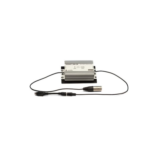 Hive Lighting Hornet 200-CX Battery Cable with In-Line Voltage Regulator The 200-CX Voltage Regulator allows for battery operation from the widely available single 14.4V battery with a D-tap to 4pin XLR cable. Built to mount directly to the Hive Adjustable Yoke using the same pin clip as the Hive battery plate or easily adapted to mount to a light stand or grid with a standard Mafer/Super Clamp. Compatible with any 10-20VDC 150Wh or greater battery with adapter to 4pin XLR. ONLY compatible with the 200-CX. Inside the Box: Voltage Regulator Compatibility: Hornet 200-CX D-Tap to XLR cable Gold Mount Battery Plate V-Mount Battery Plate Features: 4Pin XLR input Plug output wired for 200-CX Yoke Pin Mount Adaptable to mount with Mafer/Super Clamp