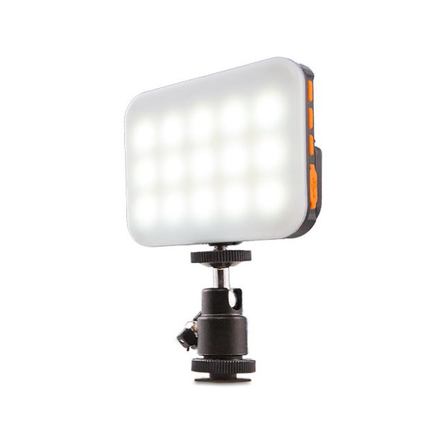 Padcaster LED Light The Padcaster LED Light is a variable brightness, daylight balanced light with a surprisingly strong throw. It accepts AA or Canon Lithium-ion batteries and has a swivel neck for easy positioning. The Padcaster LED Light comes with an included Cold Shoe Adapter for mounting to the Padcaster frame. Accepts AA or Canon Lithium-ion batteries Includes one (1) cold shoe adapter
