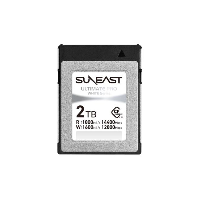 SUNEAST Ultimate Pro - 2TB CFexpress Type B White Series Memory Card A professional-grade product designed to facilitate efficient workflows in post-production, enabling high-speed continuous shooting for still images, capturing videos at the highest quality, and rapid file transfer for image processing. High-speed performance with a maximum read speed of 1800MB/s Maximum write speed of 1600MB/s for shutter burst shooting compatibility Optimal for high-quality filming with cinema cameras Partial compatibility with select XQD -enabled cameras Writable surface for convenient data management.