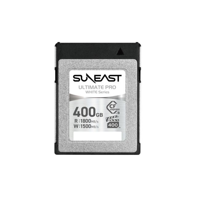 SUNEAST Ultimate Pro - VPG400 400GB CFexpress Type B White Series Memory Card Supports VPG400 standard (minimum guaranteed write speed of 400MB/s) for high-quality 4K and 8K video recording High-speed performance with a maximum read speed of 1800MB/s and write speed of 1600MB/s to support continuous shooting Ideal for high-quality recording with cinema cameras Backward compatibility with certain XQD compatible cameras 5 year warranty