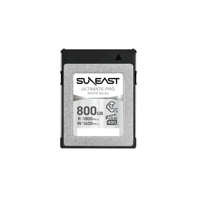 SUNEAST Ultimate Pro - VPG400 800GB CFexpress Type B White Series Memory Card Supports VPG400 standard (minimum guaranteed write speed of 400MB/s) for high-quality 4K and 8K video recording High-speed performance with a maximum read speed of 1800MB/s and write speed of 1600MB/s to support continuous shooting Ideal for high-quality recording with cinema cameras Backward compatibility with certain XQD compatible cameras 5 year warranty