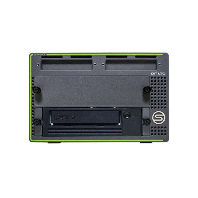 Symply SymplyPRO DIT XTH Thunderbolt Desktop, LTO-9 HH Tape Drive with Hot-Swap Dual Drive Bays, 2 x 2.5" SSD Docking Bays, Thunderbolt 3 & 12Gb SAS interfaces Space grey enclosure. Ideal for backup and archive applications LTO-9 boasts a native capacity 18TB and 300MB/Sec native performance. Internal Auto-Switching Power Supply (110-240v). Includes Data & Cleaning Cartridge & 2m (6.5ft) Active Thunderbolt 4 cable, SymplyDIT 2.5 Inch Drive tray, SymplyLOCK, SymplyATOM macOS software. 3 Year Worldwide warranty with optional extension to 5 years. TAA Certified. This single or dual half-height LTO drive comes housed in a sleek, durable metal alloy enclosure that combines style with strength. It features dual 2.5 SSD readers that accept any standard 2.5 SSD or Atomos Master Caddie. It s loaded with premium features including a high-quality cooling fan, reliable power supply, dual Thunderbolt 3 ports for easy daisy chaining, and fast device charging.