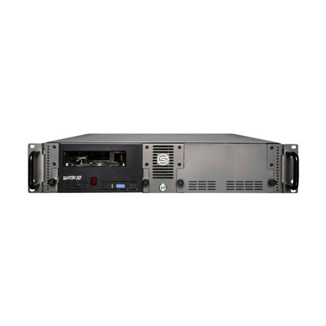 Symply SymplyPRO Ethernet LTO-10 Rackmount Tape Drive Key Features 1 x Full-Height LTO-10 Tape Drive Dual 10GbE SFP LC Interfaces 12 Gb/s SFF-8644 Expansion Port Native Transfer Speeds up to 400 MB/s 30TB Native LTO-10 Tape Capacity 75TB Compressed Tape Capacity at 2.5:1 Supports Two External SAS Tape Drives Supports 256-Bit Encryption & WORM Media LTFS Drag-and-Drop Compatible 2 RU Form Factor The SymplyPRO Ethernet LTO-10 Rackmount Tape Drive from Symply is a compact, high capacity solution for backup and archiving applications. Its 2 RU form factor features a full-height LTO-10 tape drive that supports a native capacity of 30TB and read/write speeds of up to 400 MB/s. Or take advantage of 2.5:1 compression, which allows LTO-10 tapes to store up to 75TB with read/write speeds of up to 900 MB/s. System connectivity is established using dual 10GbE SFP LC interfaces, while a 12 Gb/s SFF-8644 SAS expansion port lets you connect up to two SAS tape drives. Also supported is 256-bit encryption and WORM media.