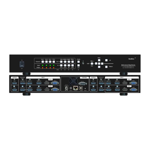 VigilLink M800Ex Projection Mapping Box Introducing the M800Ex: Elevating Projection Mapping with Digital Mapping Function! Experience the Next Level of Projection Mapping The M800Ex, an advanced iteration of the M800, now comes equipped with a groundbreaking Digital Mapping function. Building upon the capabilities of the M800, the M800Ex empowers users to apply monochrome photos or patterns through a PC tool. It allows you to decide whether to display signal source images in black or white areas, all while automatically masking the output image. Say goodbye to the tedious task of manually masking source images for projection mapping. Seamless Pattern Storage and Playback Each M800Ex box can store up to 10 different patterns, eliminating the need for a PC to implement projection mapping playback. With 4 input ports (2x HDMI, 1x DP, 1x VGA) and 1x HDMI output in each processing module, the M800Ex supports digital input resolutions up to 7680x2160 @30Hz (or 1k/8k) / 7680x1200 @60Hz with 4:4:4 full-color sampling. The output delivers stunning visuals at up to 2048x1080 @60Hz, driven by an integrated 10-bit high-end processor, motion adaptive de-interlace, low angle smooth algorithm, 3:2/2:2 pull-down, and support for non-VESA standard input timing. Precision Geometry Control with Advanced Warp Technology Unlock the power of advanced warp technology with the M800Ex. This feature enables users to execute edge blending and intricate geometry alignment with up to 17x17 control points, accessible via an IR controller, USB, WebGui, or Ethernet. Discover new functions like linear grid Line Adjustment and Corner Wall image adjustment for mapping images at 90-degree corners. Standard features include separate R, G, and B gamma correction for edge blending region color fine-tuning, individual color correction for each output, and 9 regions for black level uplift to compensate for projector light leakage. Witness real-time geometry and color adjustments for an optimized outcome. Effortless Connectivity and Video Wall Functionality HDMI loop-out simplifies connectivity, supporting daisy-chaining up to 8k/1k @30Hz / 4096x2160 @60Hz, enabling expansive displays with multiple cascaded units. The video wall function simplifies cropping, allocating source images for each projector, and the configuration of overlap pixels for seamless edge blending. Achieve complete curved edge blending with only the remote controller and Ethernet. No additional devices are required except for signal sources and projectors. Flexible Display Options with PIP and POP Functions Standard PIP (picture in picture) and POP (side by side) functions offer many display possibilities, with PIP image sizes ranging from 320x180 to 1920x1200. In a single M804, users can display up to 8 different input contents on the screen. Enjoy the convenience of image rotation (90/180/270 degrees) and flip options in both primary and sub-images, enhancing system flexibility. Cost-effective and Hassle-Free Projection Mapping The M800Ex empowers users to effortlessly replace high-end projectors with cost-effective alternatives, eliminating the need for lens shift, warp, and edge blending. It offers a low entry barrier, cost-effectiveness, reliability, and flexibility. Explore the M800Ex Series The M800Ex series is available in four distinct models: M801Ex: A single-channel version M802Ex: A two-channel version M803Ex: A three-channel version M804Ex: A four-channel version Elevate your projection mapping experience with the M800Ex series. Welcome to the future of digital mapping and versatility. Featured Highlights Modularized design of edge blending processor Up to 120 68 warp control point Embedded video wall function, no image splitter is required. 4K loop out port for daisy chain connection in cascade application. Easy configuration via IR remote, PC tool, or WebGUI.